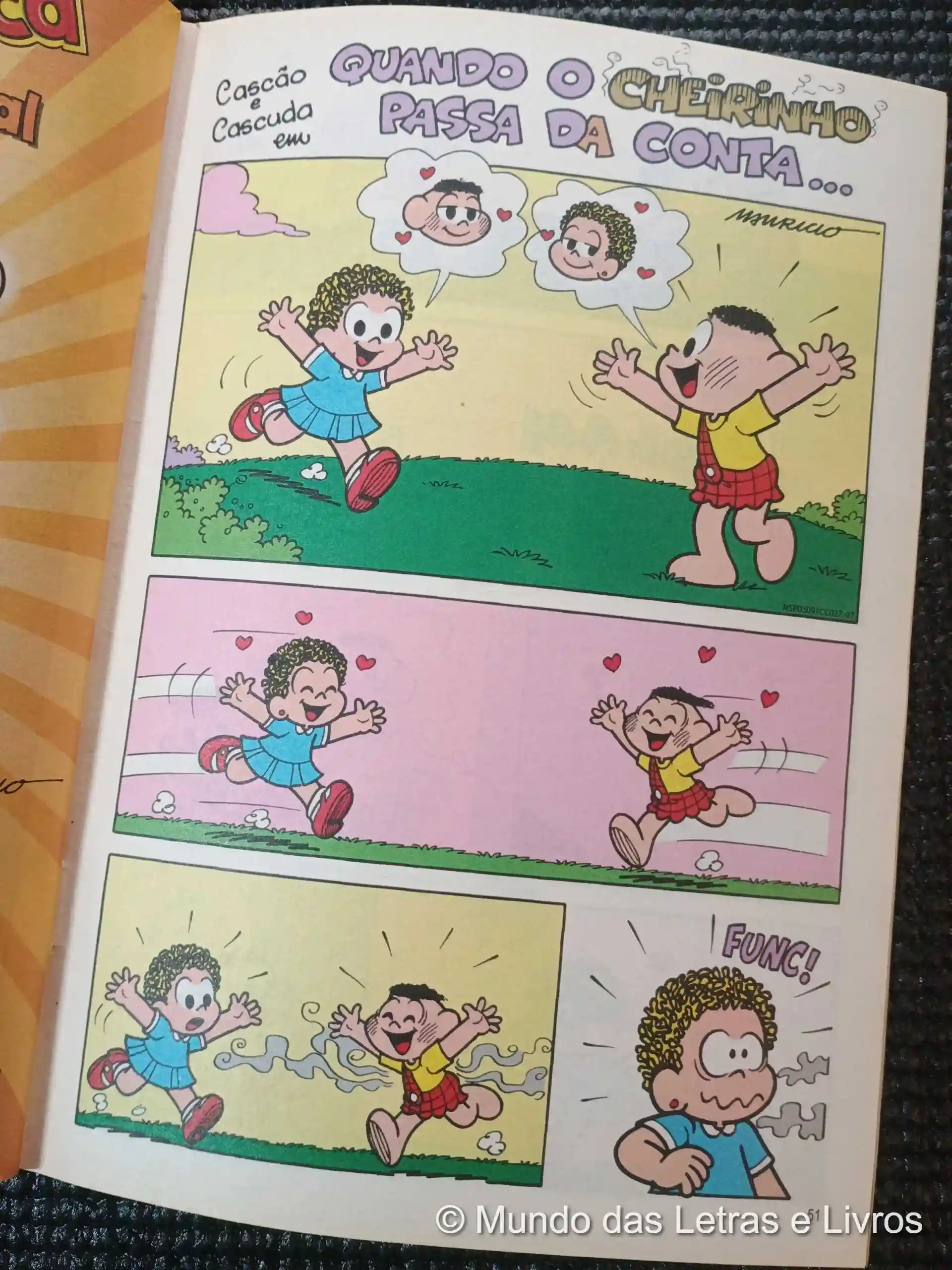 Personagens: Cascão, Dudu, Maria Cascuda, Franjinha, Marina
