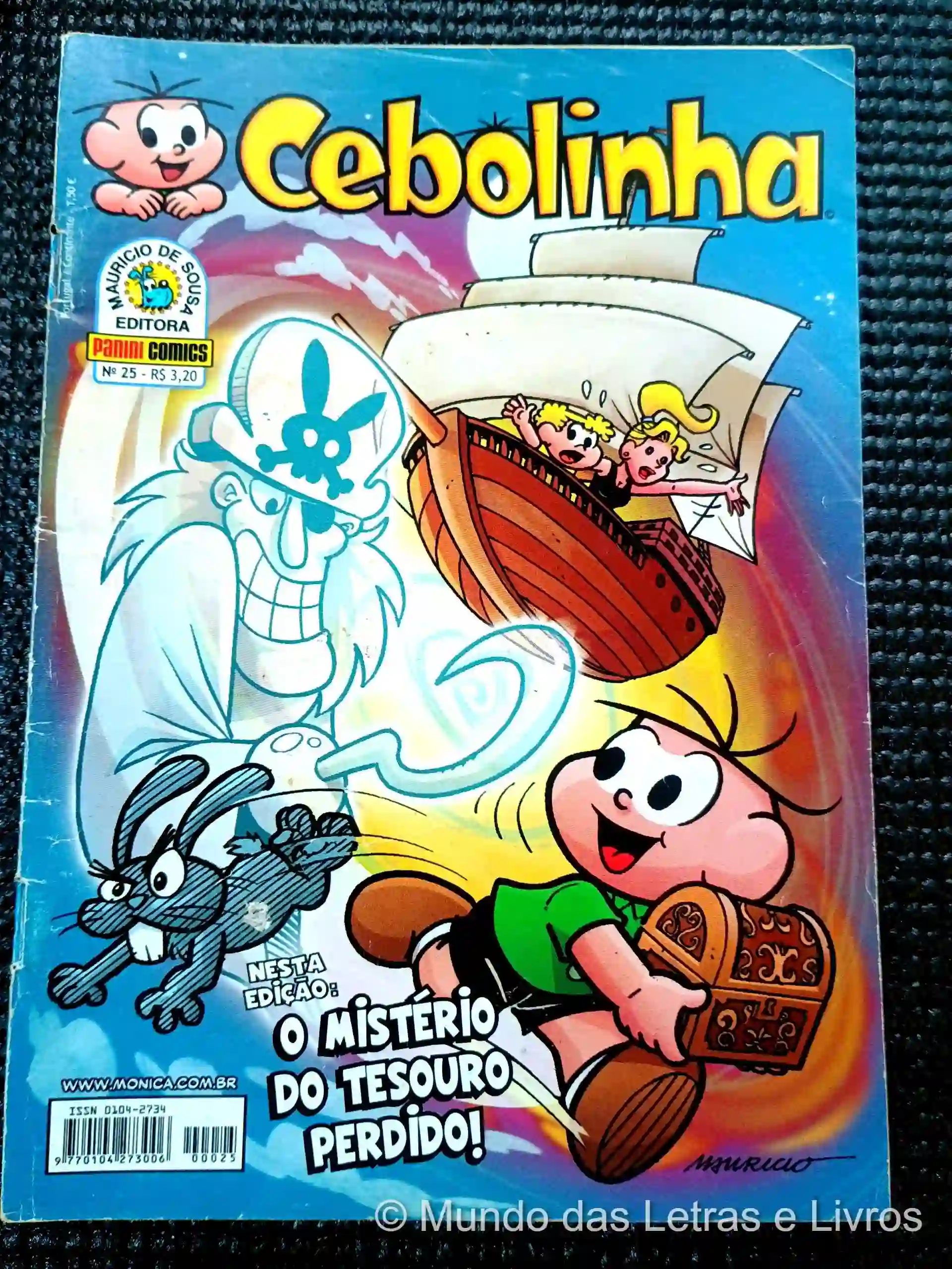 A edição n° 25 de Cebolinha oferece um mergulho em “O mistério do tesouro perdido”, uma saga que leva os personagens a desvendarem enigmas e enfrentarem desafios. Cebolinha, Xaveco e Xanim embarcam em uma jornada repleta de perigos e reviravoltas, encontrando o misterioso “Pirata Fantasma” em uma trama que mistura aventura e suspense. Além disso, a edição apresenta outras histórias, como a divertida “Onça” e a intrigante “O nariz do louco”, que enriquecem o universo da Turma da Mônica.