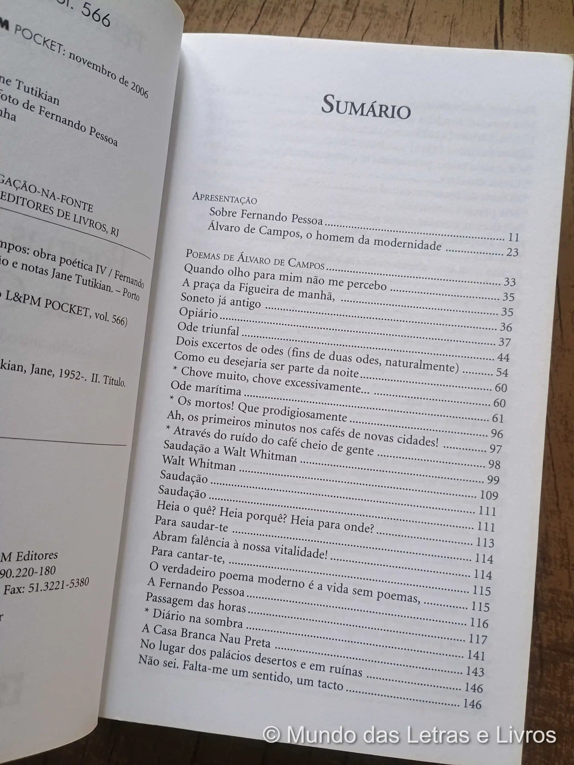 A obra apresenta uma seleção de poemas de Álvaro de Campos, um dos mais importantes heterónimos criados por Fernando Pessoa.
