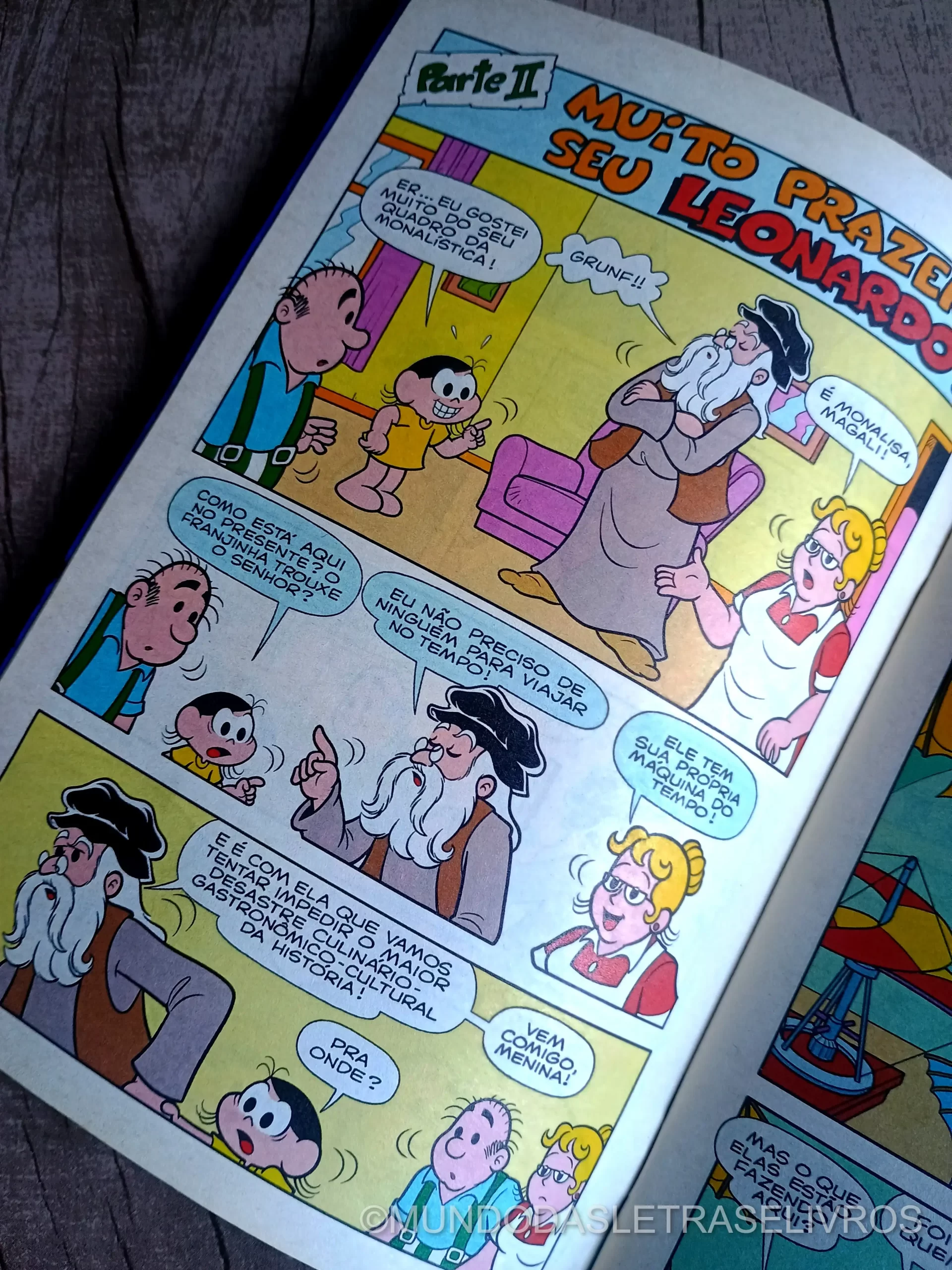 Personagens: Magali, Tia Nena, Pepo, Pepo (Pedro Honório Salguetto) e Leonardo da Vinci.